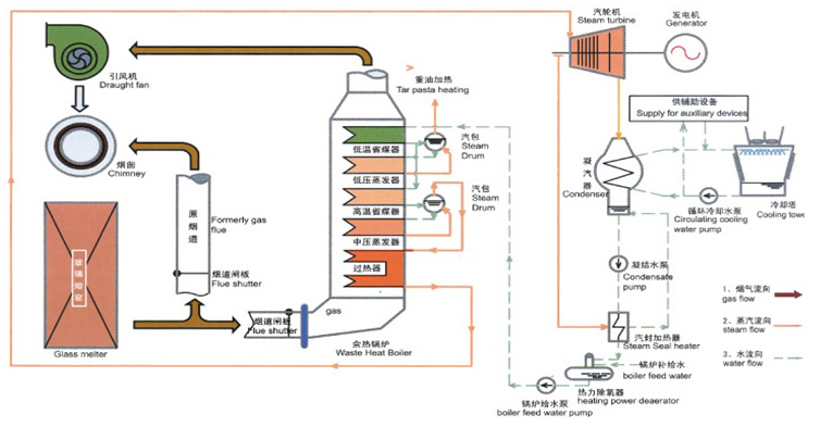 玻璃窯余熱發電工藝流程圖