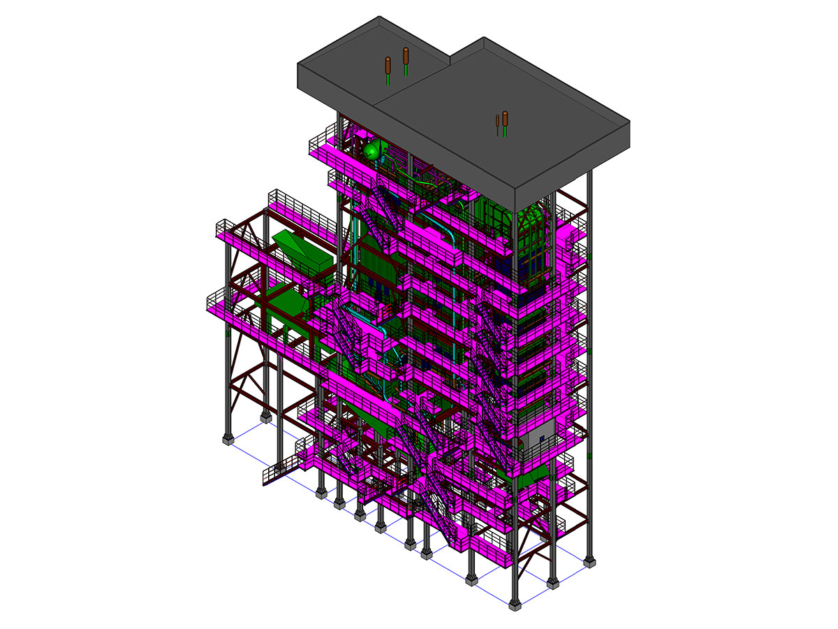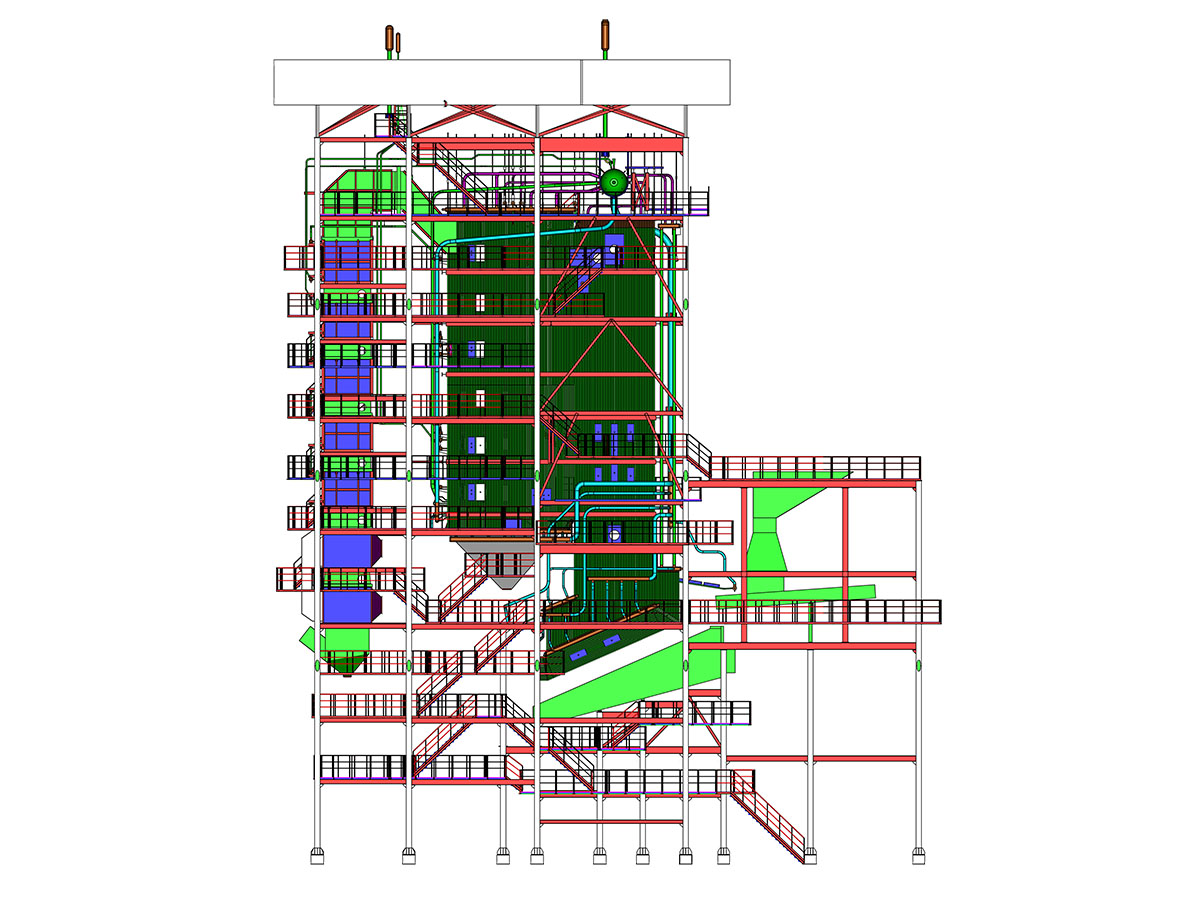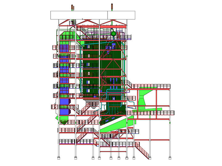 d. Fluidized bed boiler: It is reinforced with backward inclined air distribution plate to ensure the smooth discharge of large solidified materials; the external high temperature superheater is used to extend the service life of high temperature superheater; the large pitch tail heating surface is arranged, and the tube row is less. Blocked.